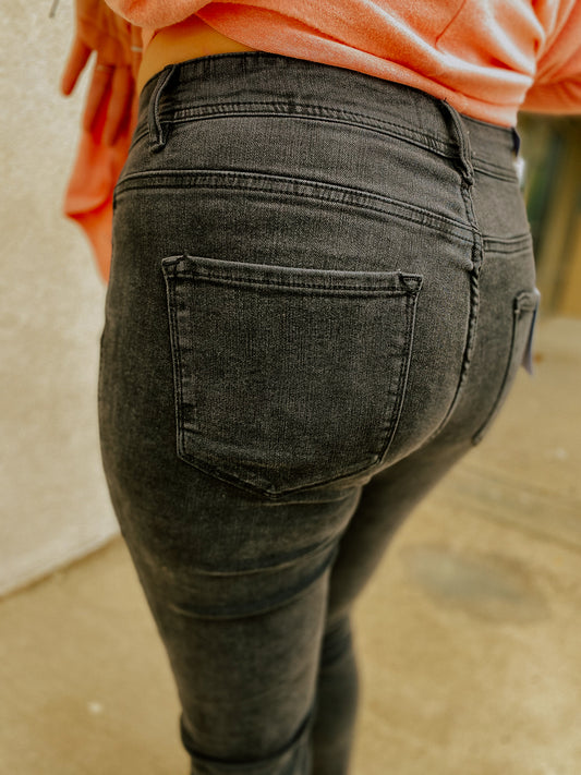 KanCan Mid Rise Button Front Distressed Ankle Skinny