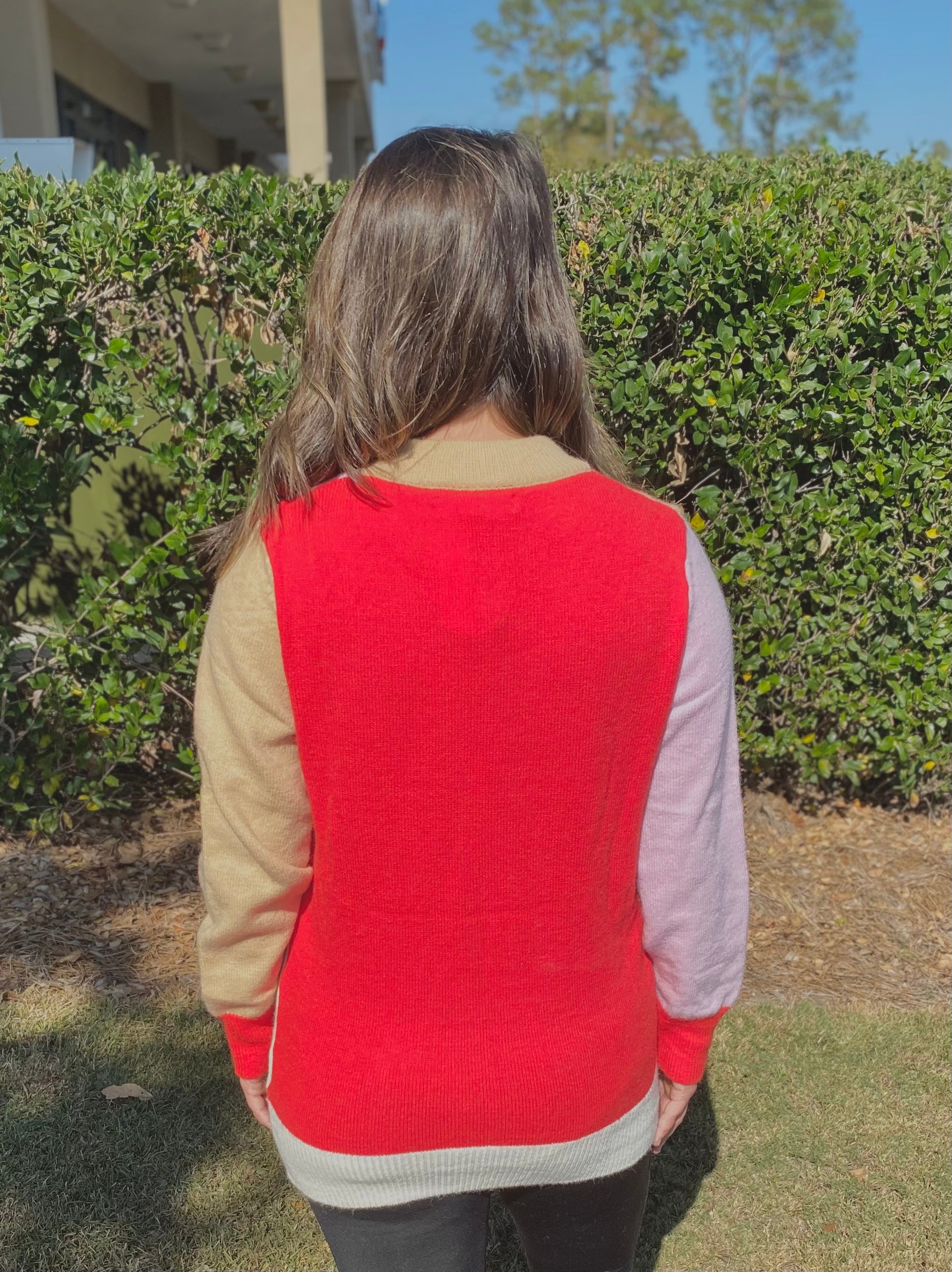 Who doesn't LOVE a good color-block?! The Ella Colorblock Sweater features a slightly smocked neckline, full-length sleeves, tight knit detailing throughout, a soft and comfortable material, and color-blocks of camel, baby pink, red, and ivory. Pair with your favorite denim, booties and everyday accessories!