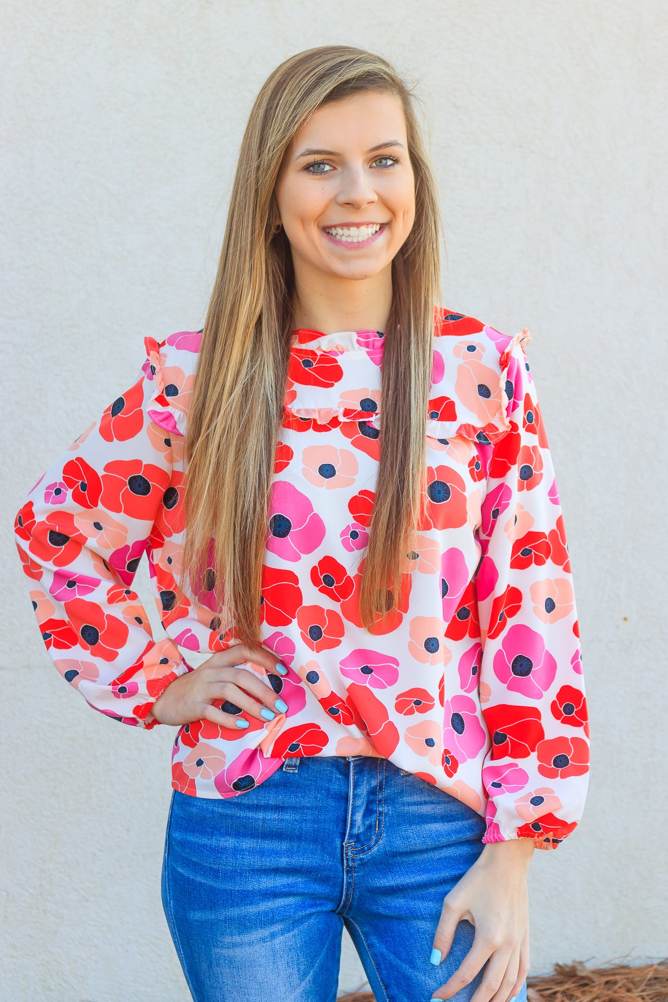 Our Evans top is on the top of our list! Sweet ruffle details and puffy sleeves will put this top on repeat in your wardrobe. Pair with jeans and front tuck for a modern look or pop over a blazer for a more professional look.