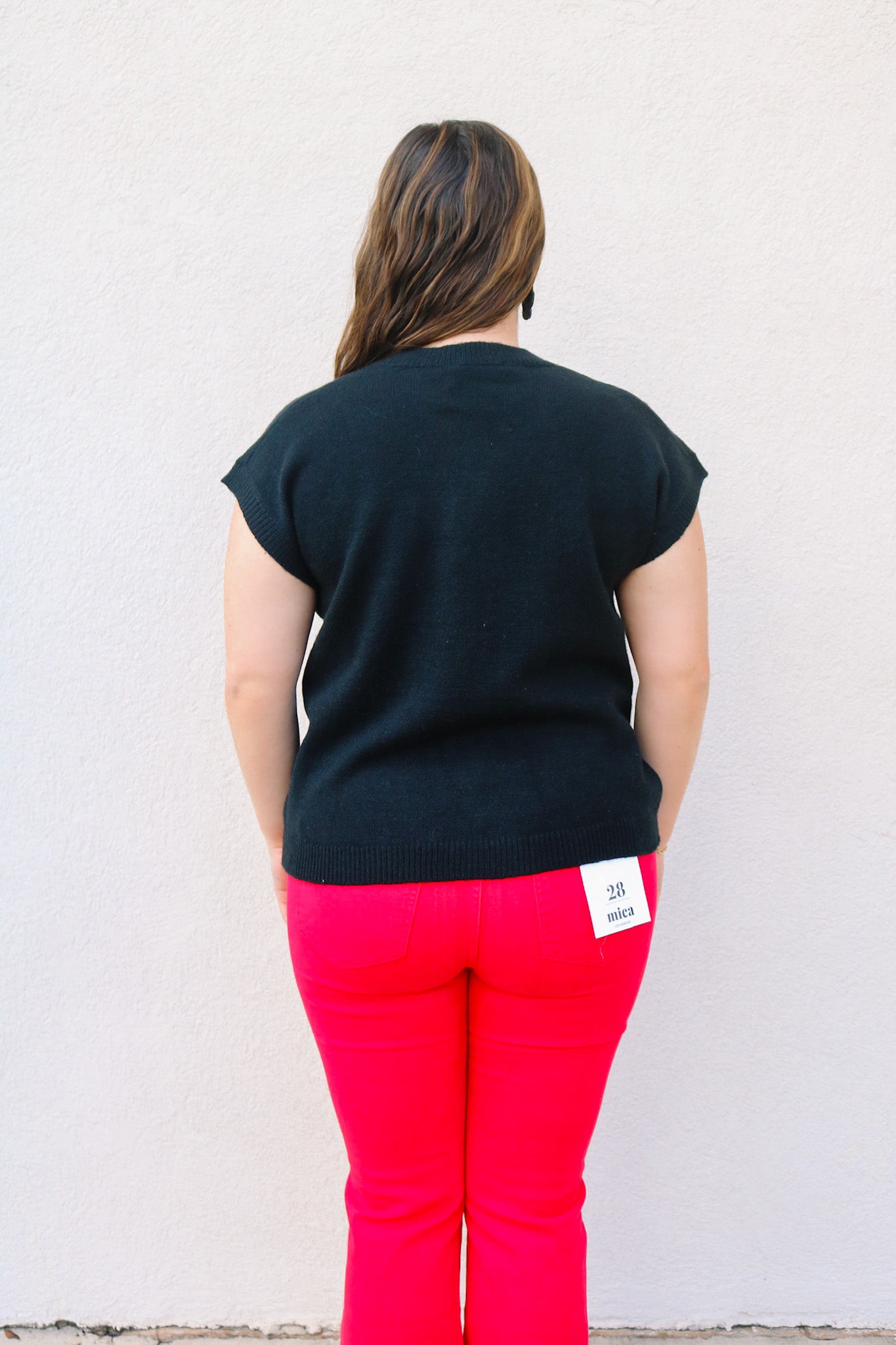 This sequin football sweater vest comes in black, red, and white and is perfect for layering over a long sleeve shirt or turtle neck. With its playful design and versatile colors, it adds a touch of fun to your winter wardrobe. Stay warm and stylish with this trendy piece.