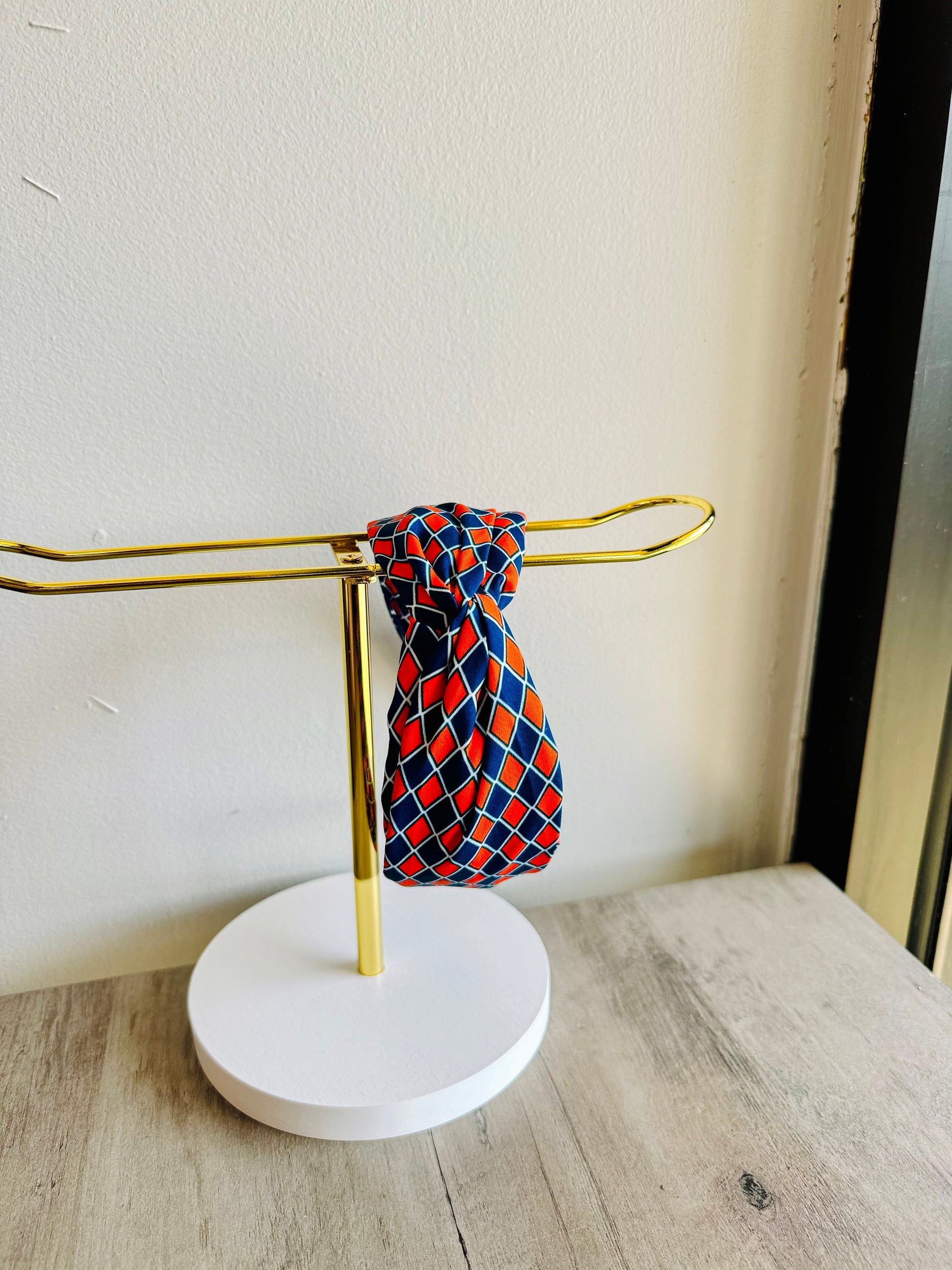 Introducing the Simple Gameday Headband, the perfect accessory for any sports enthusiast. Its stylish design features red beaded accents and a bold orange and navy diamond checkered pattern. Stay fashionable while showing off your team spirit.
