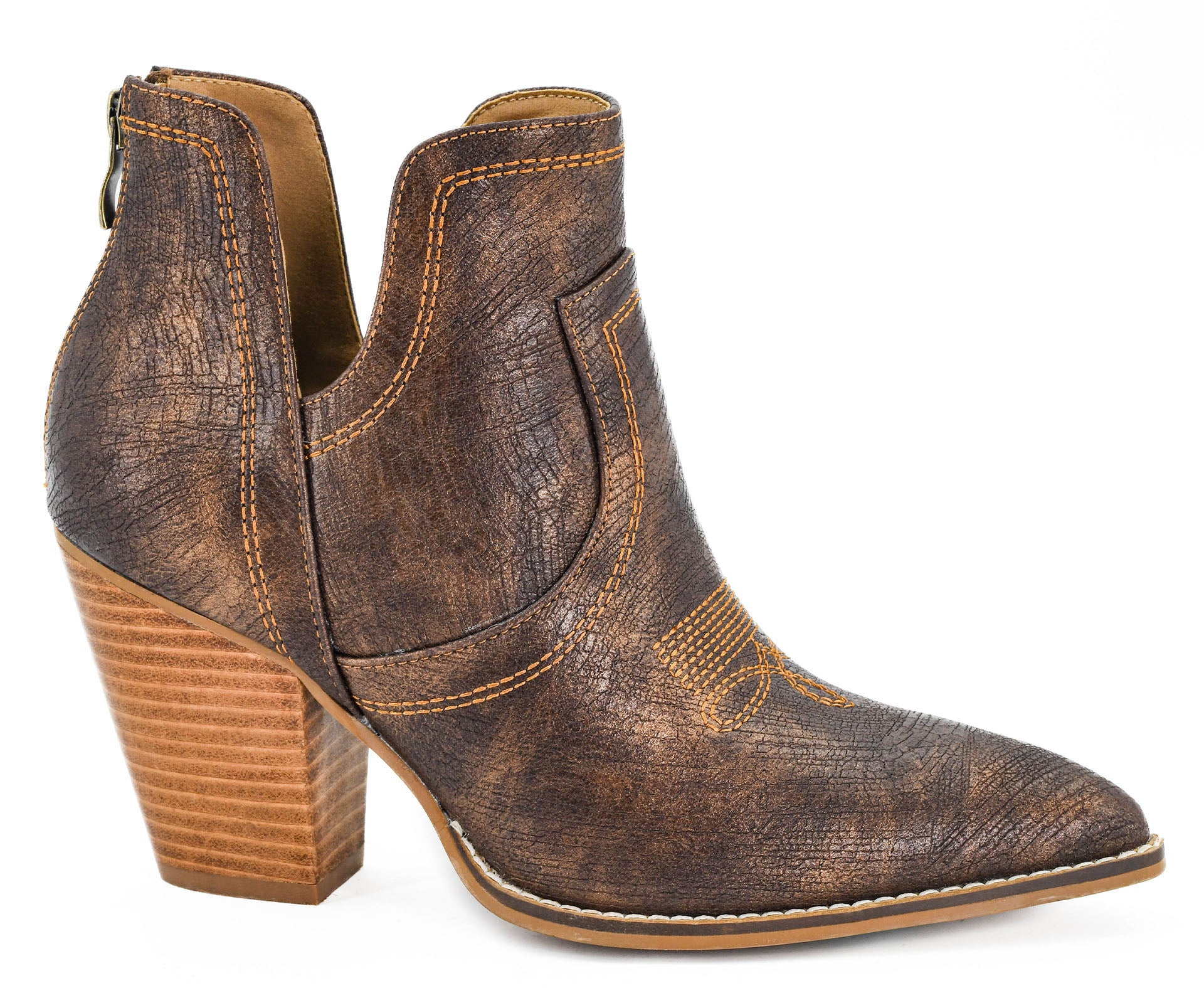 Meet your new go-to bootie for bold, rustic style! These western-inspired ankle boots feature distressed brown faux leather with classic stitching that looks effortless with denim, dresses, or skirts. The stacked block heel gives you just the right amount of lift while keeping things comfy enough for all-day wear. Whether you’re headed to a casual day out or dressing up for a night on the town, these boots are sure to turn heads.